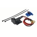 Instead of the market standard press-on lid, the compact SD14 comes with a high-quality, spring-loaded folding lid like the standard on-board sockets used by vehicle manufacturers. The socket made of insulating plastic is equipped with high-quality cables and removable cable contacts. The delivery includes a fuse bracket with fuse that can be installed flexibly and a mounting bracket for attachment to the pipe frame.