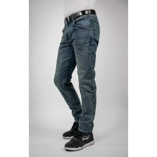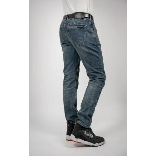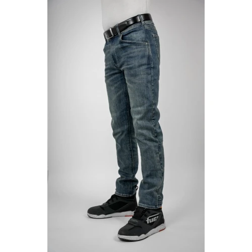 Den vaskede blå fargen og straight fit-passformen gir en klassisk stil, slik at du kan bruke buksen både på og av motorsykkelen uten å gå på kompromiss med utseendet.