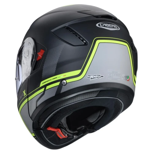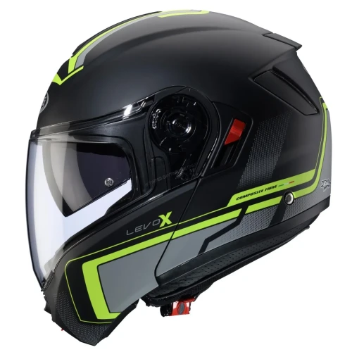 Caberg Levo X Elite Matt Sort/Neon Gul – Premium MC Åpningshjelm med Panoramautsikt