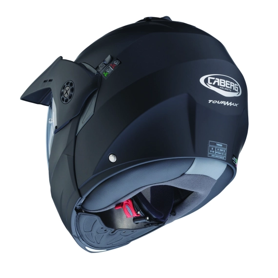 Caberg Tourmax X er verdens første flip-up adventurehjelm utviklet spesielt for enduro og adventure, med dobbel P/J-homologering. Dette gjør at hjelmen kan brukes trygt både med hakebøylen lukket som fullface-hjelm (P) og åpen som jet-hjelm (J). Tourmax X er den nyeste og forbedrede versjonen av den populære Tourmax, nå oppgradert for å møte de strenge kravene i ECE 22.06-standarden.