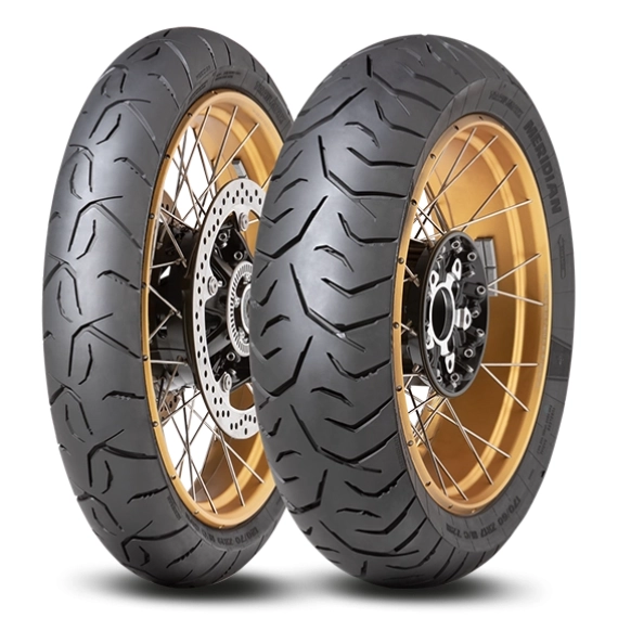 Dunlop Trailmax Meridian er et premium adventure- og trail motorsykkeldekk utviklet for ryttere som ønsker større frihet på både asfalt og lette grusveier. Dekket kombinerer innovativ Ice-Ax-mønsterdesign, avanserte gummiblandinger og Multi-Tread (MT)-teknologi for å gi forbedret grep, stabilitet og slitestyrke i ulike kjøreforhold. Trailmax Meridian gir trygg kontroll og komfortabel feedback, samtidig som det leverer økt kjørelengde og respons i både vått og tørt føre – noe som gjør det til et ypperlig valg for dagens høyytelses adventure-sykler.