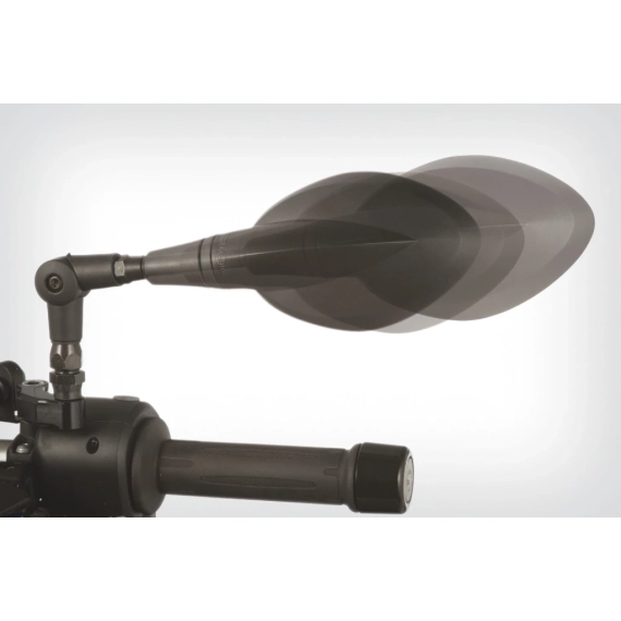 The brilliant motorbike mirrorrange with stepless angle and arm length adjustment.
