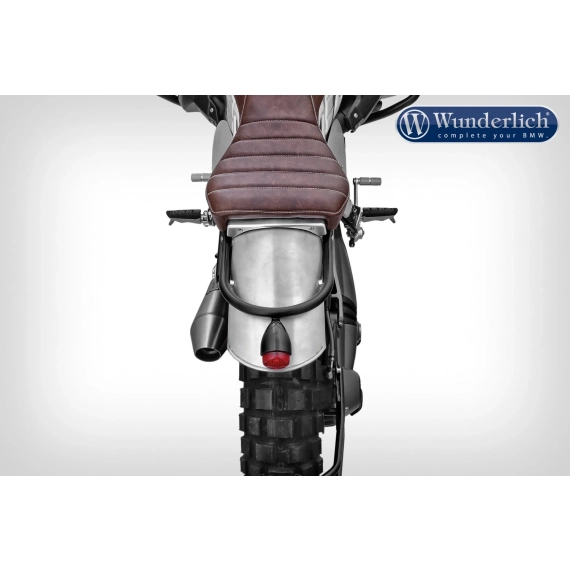 The high-quality, striking guard is mounted using a black coated bracket made of round tubing and a clamp that makes for easy installation. Can either be combined with our tail light or one of your choice. That's why we also haven't added the drill holes for mounting the tail light.