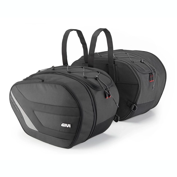 Store utvidbare softbags som festes med sterke borrelås-stropperPar med myke sidevesker som kan utvides til å romme hele 35 + 35 liter, utviklet for å gi maksimal lastekapasitet, praktisk i bruk og sikkerhet på turer med motorsykkelen.