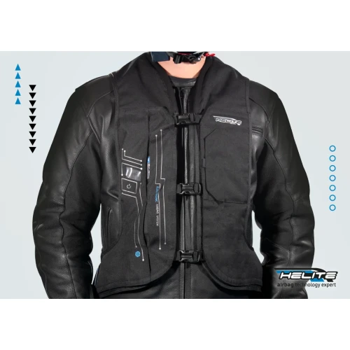 Helite elektroniske airbag-vest er utstyrt med en E-cartridge med pyroteknisk utløsingssystem, som sørger for at airbagen blåses opp på millisekunder når en ulykke oppdages.