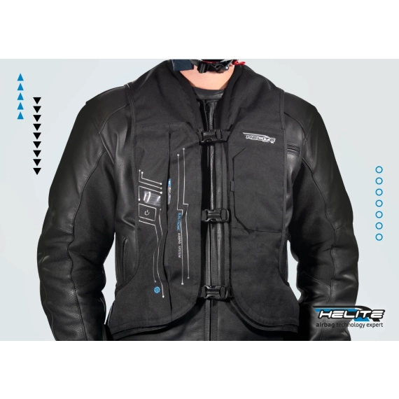 Helite Elektronisk Motorsykkel Airbag Vest er en avansert, trådløs airbagvest med sanntidsdeteksjon, Turtle Technology™ og stor airbagdekning for maksimal beskyttelse av overkroppen. Med innebygde sensorer, lynrask E-cartridge-utløsning, lang batterilevetid og gjenbrukbar konstruksjon (kun patron byttes) får du en lett, komfortabel og brukervennlig vest som brukes utenpå MC-jakken – perfekt for både pendling, touring og sporty kjøring.