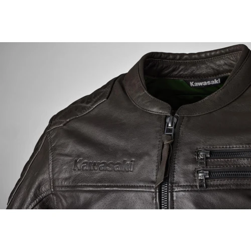 • Vintage glidelåsdetaljer og preget Kawasaki-logo på bryst og korsrygg
