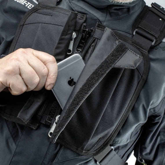 - Skjulte lommer på forsiden av selen gir rask tilgang til penger, telefon og pass.