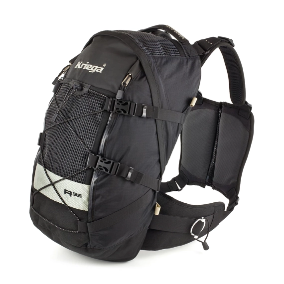 Den ultimate touring sekken med komfort til langturer. Med sin unike zip-in Quadloc ™ -sele, gir R35 muligheten til å bære tung vekt uten å slite ut skuldrene og uten å begrense bevegeligheten. Når sekken er justert inn til føreren, åpnes selen og gjør det enkelt å ta på igjen. Kriegas spesielle strammemetode er meget effektiv, gjør at man slipper løse stropp ender og gir et rent, ryddig design.