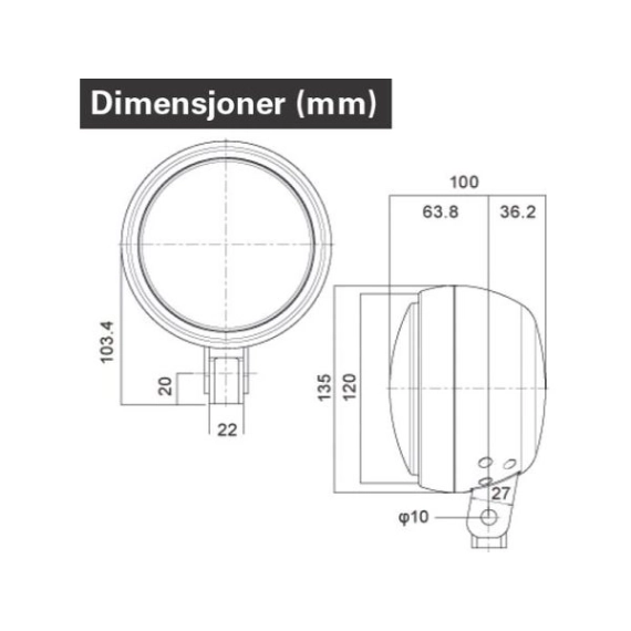 LED HEADLIGHT CAPSULE120 SIDE-MOUNT, BLACK