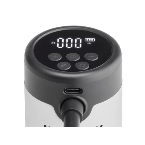 Settet inkluderer en USB-C-kabel, en USB-USB-C-adapter, en vanlig amerikansk ventil og adaptere for baller, oppblåsbare produkter og dekk med fransk ventil.