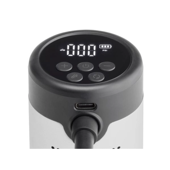Settet inkluderer en USB-C-kabel, en USB-USB-C-adapter, en vanlig amerikansk ventil og adaptere for baller, oppblåsbare produkter og dekk med fransk ventil.