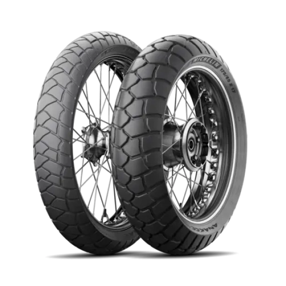 Michelin Anakee Adventure er et adventure- og trail motorsykkeldekk utviklet for førere som ønsker trygg og komfortabel kjøring på både asfalt og lettere grus/stier. Dekket kombinerer avansert gummiteknologi med et optimalisert mønster som gir godt grep og stabilitet i svinger, god respons i både retlinjet kjøring og i tekniske partier, samt pålitelig ytelse på både vått og tørt underlag. Anakee Adventure er designet for lang levetid og jevn slitasje, og er godkjent som originalt utstyr på flere store adventure-modeller, inkludert BMW R 1250 GS, noe som understreker dekkets allsidighet og kvalitet.