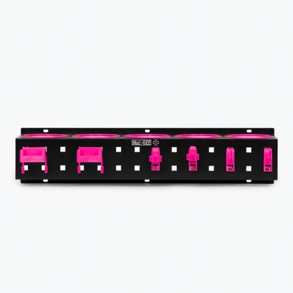 Monteres enkelt på veggen i verkstedet eller garasjen for et ryddig og profesjonelt oppsett som holder alt organisert og klart til bruk. Med Muc-Off Rack har du full kontroll – så du kan fokusere på det viktigste: å holde det strøkent!