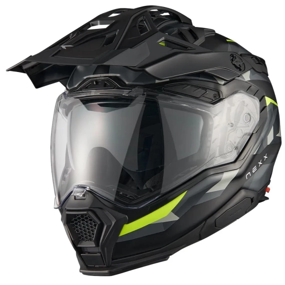 NEXX X.WED3: Allsidig eventyrhjelm for både vei og terreng. NEXX X.WED3 er den perfekte hjelmen for både off-road og gatekjøring, uten behov for verktøy. Hjelmen kan enkelt tilpasses for bruk med briller i støvete forhold og har en sømløs overgang mellom full-face og adventure-hjelm. Den er laget av ultralett og støtbestandig X-PRO karbonfiber, og har avanserte sikkerhetsfunksjoner som X Foam crash bumpers for å redusere kollisjonsenergi og risiko for kragebeinsbrudd. Hjelmen har også et unikt skalldesign for å beskytte brystet ved frontale påkjørsler. Med et ventilasjonssystem som inkluderer flere luftinntak og utløpsventiler, samt den nye Mid Airflow Chamber-teknologien, holder hjelmen hodet ditt kjølig under alle forhold. Recoil Visor System gir et perfekt lufttett visir, mens Pinlock-teknologi forhindrer dugging. X.WED3 er utviklet og testet under ekstreme forhold for å sikre at den er klar for alle eventyr – både på vei og i terrenget.