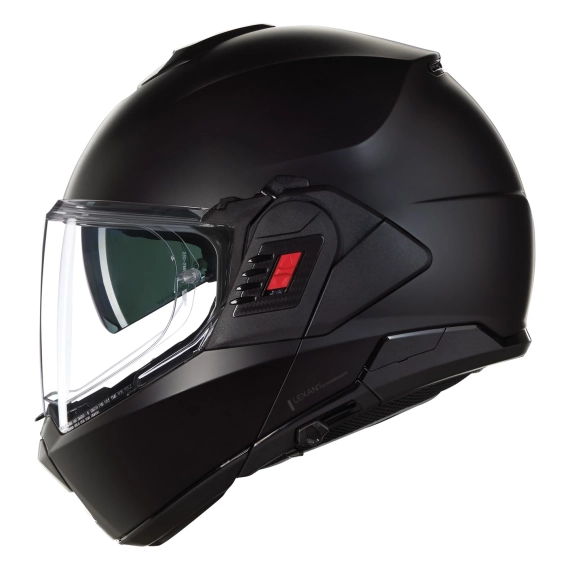 Nolan erobrer verden av modulhjelmer med den eksklusive flip-back N120-1, en motorsykkel hjelm som representerer det beste innen teknologi, innovasjon og design. Skapt for å møte kravene fra et marked som stadig mer orienterer seg mot crossover motorsykler. Med denne åpnings MC hjelmen, som har dobbel helhjelm (P) og Jet (J) godkjenning og hakebeskyttelse/bauport som kan vippes bak 180°, bryter Nolan formen med et innovativt flip-back teknologikonsept. Nolan N120-1 har mange tekniske kvaliteter som førere setter høyt; lavt støynivå, høy kvalitet i interiør og eksteriør, stort solvisir, Ultra-wide hovedvisir, pinlock orginalmontert, super passform og klargjort/forberedt for godkjent Nolan N-Com intercom. Solvisiret har enkel betjening langs venstre nedre kant, skyv det frem når du trenger det, trykk på en knapp, så spretter solvisiret raskt opp igjen.