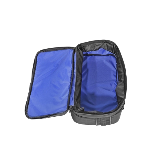 • Blue waterresistant lining makes it easy to see inside the bag so that things can’t disappear into the stitching.