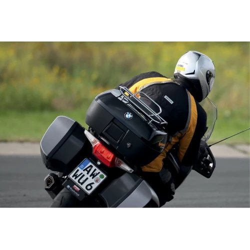 This top case rack was designed exclusively to fit the large Original BMW top case of the R1200 RT and K1200/1300 GT. It is a very elegant and simultaneously useful addition to your top case that allows you to carry additional gear along and/or those things that you wouldn’t want to put in your top case, such as wet rain suits, gloves etc...