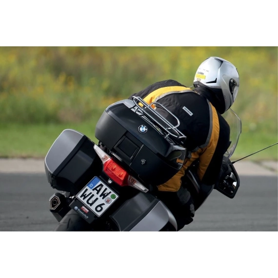 This top case rack was designed exclusively to fit the large Original BMW top case of the R1200 RT and K1200/1300 GT. It is a very elegant and simultaneously useful addition to your top case that allows you to carry additional gear along and/or those things that you wouldn’t want to put in your top case, such as wet rain suits, gloves etc...