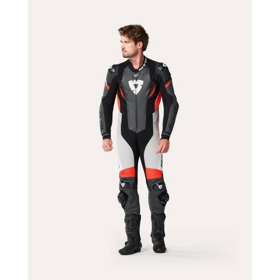 Rev'it One Piece Control Sort/Neon Rød, Hel Skinndress