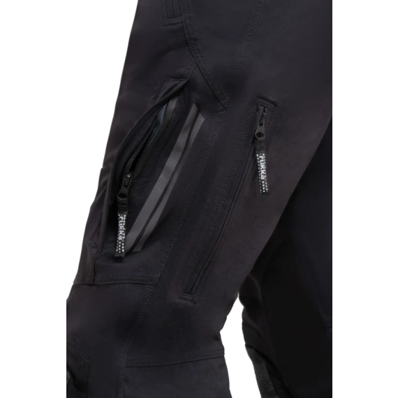 Justerbare benåpninger med glidelås og borrelås gir fleksibilitet, og buksen kan utstyres med Rukka Defence & Comfort-seler for ekstra støtte. Slitesterke 500D CORDURA®-forsterkninger på benavslutningene og Rukka ArmaTech-forsterkninger på knærne gir ekstra holdbarhet og beskyttelse.