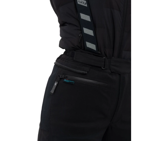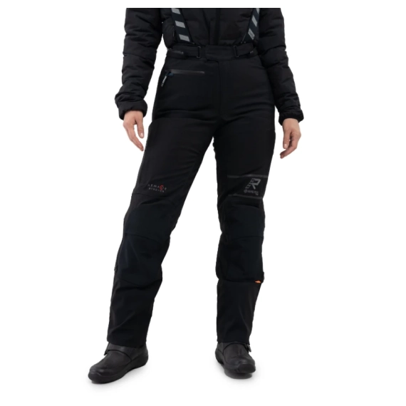 Helårs touringbukse i GORE-TEX® Pro 3-lags laminert stretch-polyamid – 100 % vanntett, vindtett og pustende. Armacor®-forsterkninger på knær/hofter, Rukka AirCushion og Antiglide Keprotec® i setet for stabilitet og langturskomfort. Inkluderer løs dunbukse (60 g, 90/10 dun/fjær) for ekstra varme. Ventilasjon på lårene. Dobbel midjejustering, justerbare ben med glidelås/borrelås. Defence & Comfort skulderstropper (avtakbare) og lang koblingsglidelås til jakke. Lærforsterkninger på innsiden av knær og sete, Cordura® på innsiden av legger. 1 utvendig glidelåslomme.