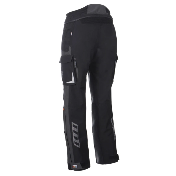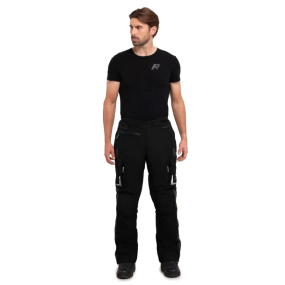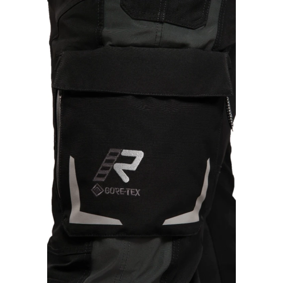 Robust adventurebukse med 100 % vanntett, vindtett og pustende GORE-TEX®-membran, Rukka D3O® Air XTR Level 2-beskyttere på hofter og knær, samt CORDURA® 500D og skinnforsterkninger på utsatte soner. Rukka AirCushion i setet, ventilasjonsåpninger foran og bak på lårene, stretchpanel i korsrygg, justerbar midje og benåpninger gir maksimal komfort på lange turer. Med cargolommer, glidelås for tilkobling til jakke og klargjøring for seler er Ventu-R en komplett touring- og adventurebukse for krevende førere.