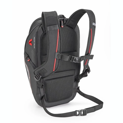 Ergonomiske og justerbare skulderstropper gir komfort selv på lange motorsykkelturer, mens stroppen rundt livet stabiliserer lasten.