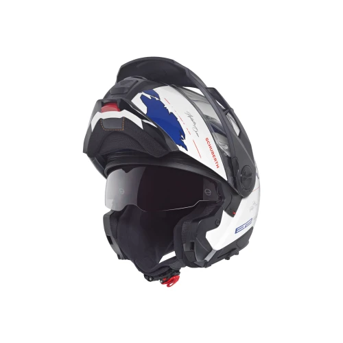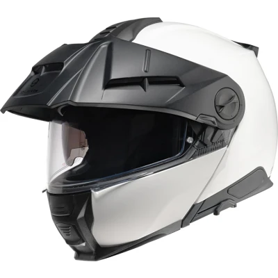 Motorsykkel hjelmen, E2, er andre generasjon av SCHUBERTHs adventure-hjelmer og den andre hjelmen i deres sortiment med P/J dobbel homologering i samsvar med den nye ECE 22.06-standarden. E2 kombinerer komforten fra den populære Flip Up/åpnings hjelmen i "C"-serien med det tøffe utseendet og funksjonaliteten til en offroad-hjelm. Med tilpasningsdyktig interiørpolstring som gir perfekt passform, er denne hjelmen designet for å takle selv de mest krevende og støvete stiene.