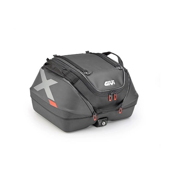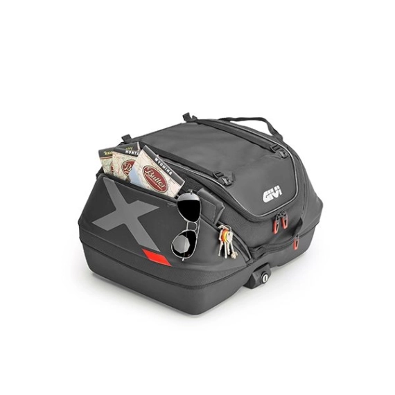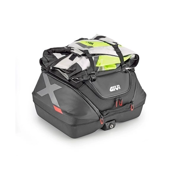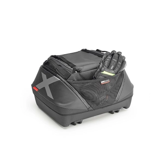De to romslige side-lommene er lett tilgjengelige, og for å øke tilgjengelig plass har XL08 toppkofferten doble stropper på den øvre delen for å sikre ekstra last, for eksempel hvis man ønsker å ha en softshell-jakke eller regnutstyr innen rekkevidde.