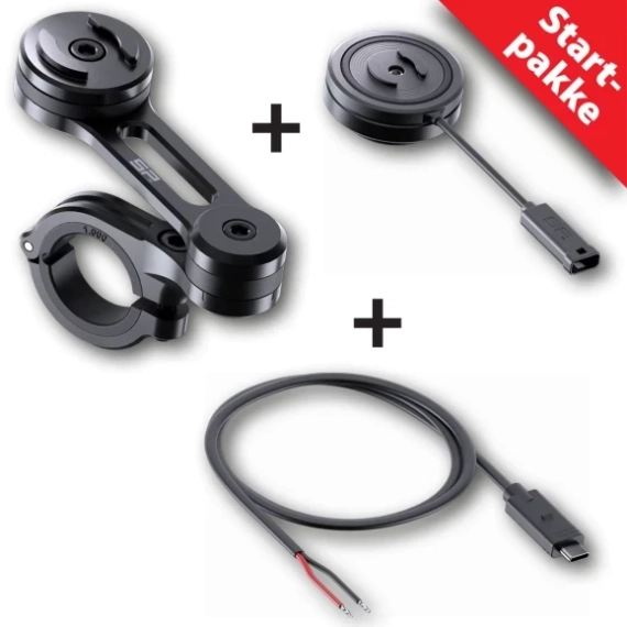 Pakken inneholder alt du trenger for å montere trådløs lading med antivibrasjon på de fleste MC modeller. Det er braketten som er begrensningen i denne pakken. Vi har valgt ut Moto Mount Pro som passer til alle rør-styrer. Denne pakken vil ikke la seg montere på modeller med støpte styrer eller clipon styrer.