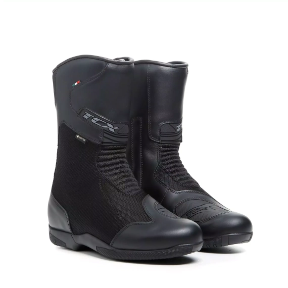TCX Dame Tourer GTX er touring MC-støvler utviklet spesielt for damer, basert på TCX sitt Woman Fitting Concept. Dette betyr at passform, støtte og sikkerhet er tilpasset den kvinnelige foten – ikke bare en mindre kopi av herremodellen.