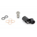 Our high-grade adapter for the break and clutch line offers an extension of around 35 mm, which has proven effective in practice. We include the necessary hollow screw and all required seals as standard with the practical adapter. It is attached directly to the respective brake pump or the clutch perch. We have gently angled the edges of the adapter to simplify connection of the supply lines, so that they can be routed and connected without any tension.