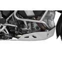 The functional design and constructive integration of our »EXTREME« engine protection protects the engine and the manifold. It moulds itself so tightly to the aggregate that not only is the frontal area of attack minimised, but the ground and lean angle freedom remain almost entirely unchanged. The form of this protection avoids unpleasant levering or jamming of the vehicle over terrain, no matter whether from branches, scree or rocks. Openings ensure that water picked up during river crossings can flow out freely again. Typically Wunderlich, the team have made sure that you have good, unrestricted access during maintenance works: For example, an opening has been included for unhindered drainage of the engine oil. The aluminium engine protection is corrosion-resistant and the generated forces and vibrations are absorbed by impact-decoupling attachment elements. We manufacture the »EXTREME« engine protection using the challenging and advanced hydroforming manufacturing process. This allows us to realise complex component forms and geometries (especially asymmetrical ones, in which we can achieve lower weight and simultaneously realise high component rigidities and mechanical stability through optimisation of the material thickness. The result is a resistant, weight and form-optimised engine protection unit that moulds so tightly and organically to the aggregate that the design principle of "form follows function" becomes self-evident. Our »EXTREME« engine protection is Made in Germany. That's why we're happy to provide a 5-year warranty.