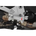 We’ve designed our EVO 1 or ERGO-COMFORT rest system with special consideration for all those who find the knee angle too tight and uncomfortable over time. It should also be considered that contact with the brake pedal is always intuitive. The brake pedal and its spatial alignment to the footrest simply has to line up. So we definitely recommend our matching foot brake lever lowering kit for anyone who would like to lower the footrests in order to enlarge the knee angle. This is because lowering the footrest means the brake pedal is inevitably too high. Our foot brake lever lowing kit takes care of the necessary adjustment by lowering the foot brake lever too. To do this we use an aluminium adapter that drops the foot pedal stop by approx. 10 mm. This restores the balance in the ergonomics between the foot rest and the brake lever. And this tiny measure increases passive safety.