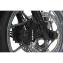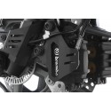 Solid protective cover for the "brembo" brake callipers of the F 750/850 GS and 850 GS Adventure. They provide reliable protection against mechanical stress and integrate into the sporty design of the GS. The high protective effect is the result of the stiffness of the 3D edged aluminium component with milled openings. This leaves the superior "brembo" logo on the brakes clearly visible. Our cover securely and reliably frames the exposed brake callipers as well as the hose connections with its clean two-point attachment.