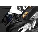 Exceptionally helpful and ergonomic component. Optimises leverage - not just on a fully loaded machine. This foldable lifting handle mounts on the left of the frame via a solid, fitted console. An additional rotation lock coupled to the shock absorber adjustment PA (preload adjuster) ensures it sits stably. When folded out, the machine is noticeably lighter and above all safer to place on the centre stand. This is due to the fact that the anti-slip grip sits well in your hand and you can transfer significantly more force to it than frame tubes which are harder to grip or even inaccessible because of luggage. After lifting, the grip stows away discreetly in its resting position. A mechanism ensures that the grip locks securely when folded away. We manufacture our lifting handle using very high-quality aluminium and the design is functional.