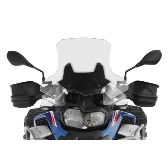 - Significantly taller (about 80 mm) than the original windshield and also considerably wider (about 180 mm) in the lower area at the transition to the protectors