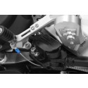 The switch, which reliably cuts the ignition whenever the side stand is folded out, certainly prevents a lot of grief. This is because riding off with the side stand folded out can have very unpleasant consequences for both rider and bike. It therefore makes sense to properly protect this exposed switch against damage from stone impacts or falls. After all, if the switch is damaged, the engine will no longer start. We replace the original plastic part with a solid component. The high level of protection is ensured by the stiffness of the angular, partially pierced 2 mm aluminium plate. It surrounds the exposed switch with its sturdy two-point attachment and reliably protects it. This reliably reduces the risk of damage to the switch, especially during vigorous off-road use. The protective cover is simple to install using the two existing and easily accessible attachment points on the vehicle.