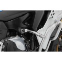 The rear, free end of the original engine protection bar for the Adventure has no additional support against the frame. It thus represents the Achilles heel of the engine protection bar. In the event of a crash or a fall it tends to give way because the forces are not immediately transferred to the frame. This brings the threat of damage to the clutch or alternator covers.