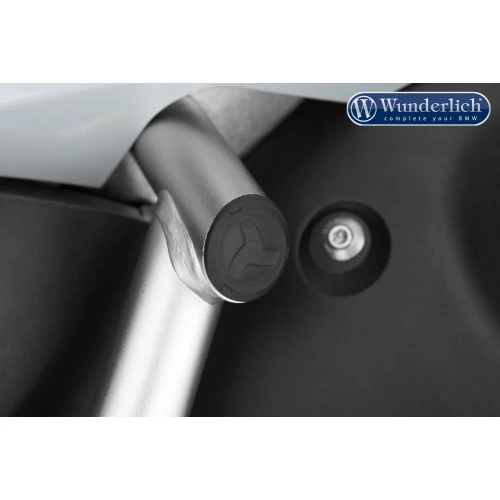 These caps neatly close the unsightly openings in the tank protection bar on the BMW R 1250 GS Adventure. They also prevent unwanted dirt or moisture from accumulating in the interior. The tank protection bar is thus reliably protected against corrosion – and also receives a visually appealing upgrade.
