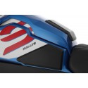 The tri-piece tankpad set is designed to match the design of the BMW. The pads effectively protect against scratches, damage and abrasion at all contact points, and improve knee closure and provide a more direct contact to the bike through increased adhesion. This significantly increases the driving experience and driving pleasure. The material consists of high-quality and non-slip black plastic, is shock-absorbing and slightly grained. The pads are self-adhesive.
