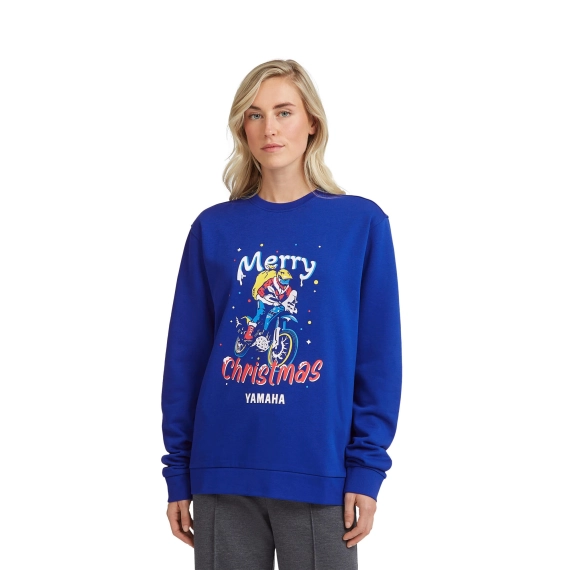 Genseren er laget i 80 % bomull og 20 % polyester, i et mykt sweat-stoff som gir god komfort og varme gjennom vinteren. Den ribbestrikkede falden og mansjettene sørger for god passform, mens den trykte Yamaha julegrafikken gir et eksklusivt og detaljert uttrykk i klassisk Yamaha-blått.