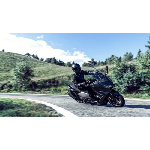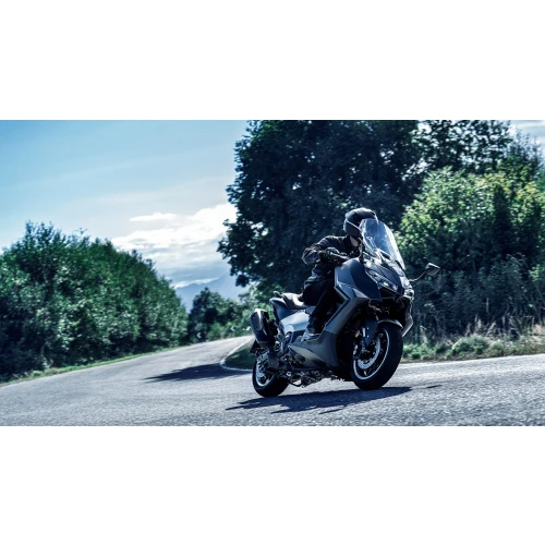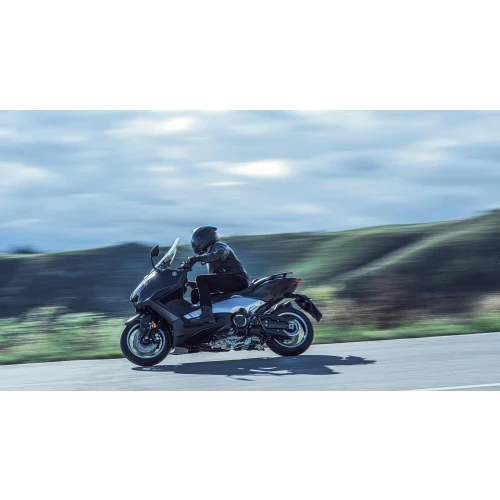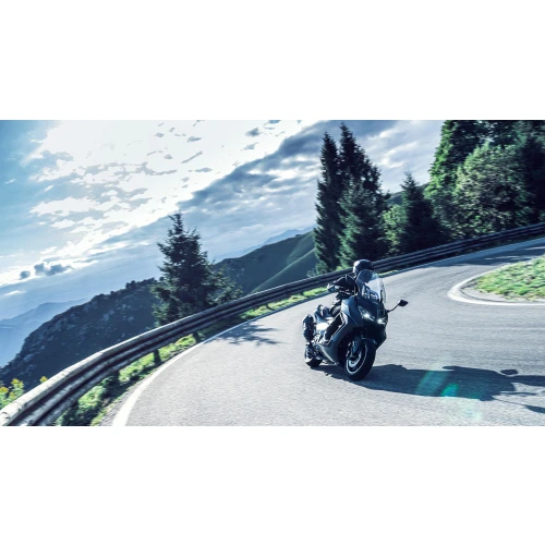 TMAX 25th Anniversary drives av den smidige 560cc 2-sylindrede motoren som gir sømløs akselerasjon for uanstrengt kjøring. Denne kompakte 2-sylindrede EURO5+-motoren har makseffekt på hele 35 kW og gjør den ideell for lengre turer med passasjer og bagasje.