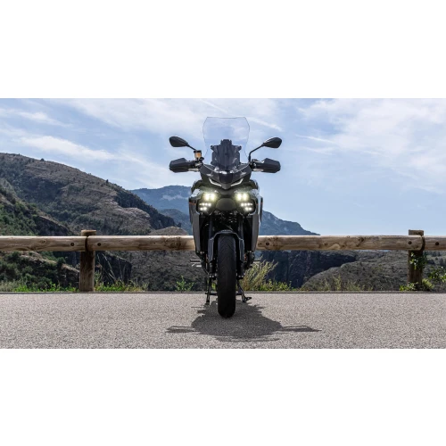 2025 TRACER 9 leveres med kraftige doble LED-frontlykter med en kraftigere og mer presis stråle, for å øke tryggheten ved kjøring i mørket. Disse nær- og fjernlysenhetene kombineres med standard LED-svinglys, som registrerer skråvinkel og lyser opp et større område av veien når de helles over 7° eller mer.