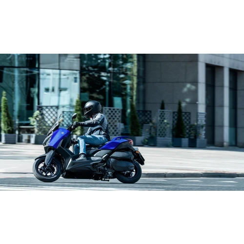 Kombinasjonen av et godt polstret trappet dobbeltsete, et romslig fotbrettområde og sammenleggbare passasjerfothvilere, gjør XMAX 300 til en av de mest komfortable måtene å pendle på. Den lett tilgjengelige cockpiten betyr at du kan raskt og enkelt komme deg på og av. Den avslappede ergonomien og utmerkede vindbeskyttelsen sørger for en stressfri kjøreopplevelse.